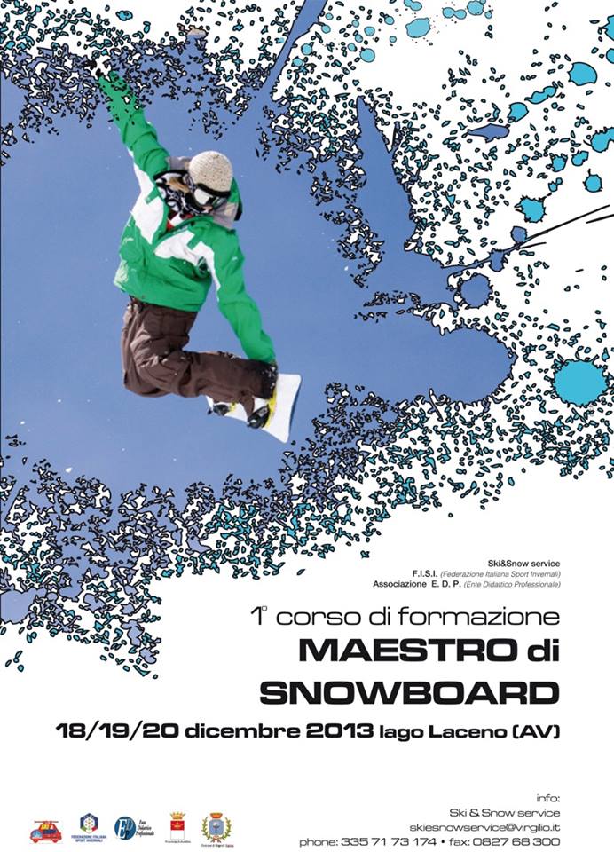 Ski&Snow service (attività di promozione del territorio); con il supporto della F.I.S.I. (Feder azione Italiana Sport Invernali), in collaborazione con Associazione E. D. P. (Ente Didattico Professionale) Organizzano: 1° corso di formazione per MAESTRO DI SNOWBOARD . Il corso è finalizzato al conseguimento dell’idoneità all’insegnamento dello Snow board, ha lo scopo di formare figure professionalmente e tecnicamente preparate , secondo i criteri dalla progressione tecnica FISI.