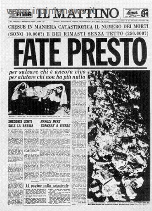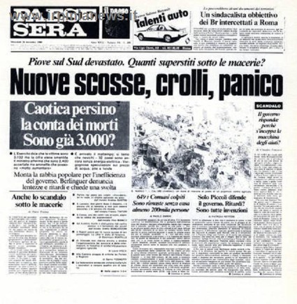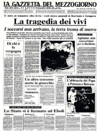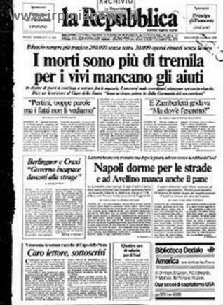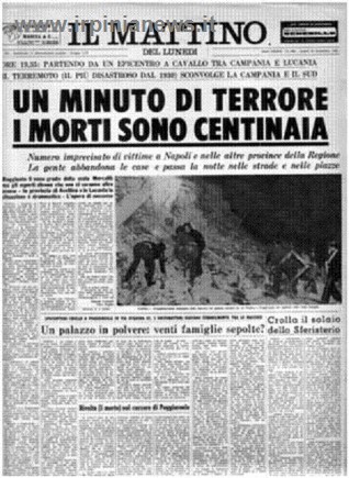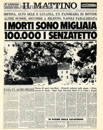 90 secondi e la Campania cambiò volto. 23 novembre 1980, ore 19.35, paesi sventrati, distrutti, vite spezzate. Morirono 2914 persone, rimasero ferite 8245 persone, senza tetto 234960. Gravemente danneggiati 687 comuni tra Campania, Basilicata e Puglia, alcuni dei quali furono completamente disastrati (37). Le scosse inoltre innescarono parecchie frane e a distruzione si aggiunse distruzione.