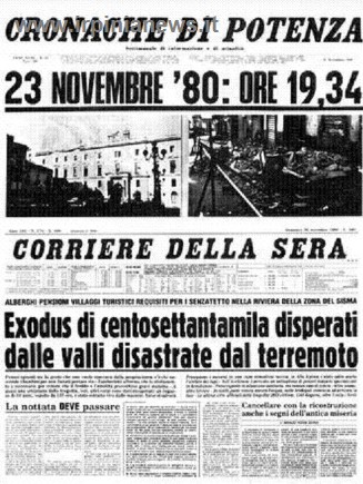 L’epicentro a circa 30 km di profondità, colpì un´area che si estendeva dall´Irpinia al Vulture, posta a cavallo delle province di Avellino, Salerno e Potenza. Una forte scossa di magnitudo 6,5 sulla scala Richter (5,9 quello registrato a L’Aquila nel 2009) che riuscì a cancellare al suolo interi nuclei urbani.