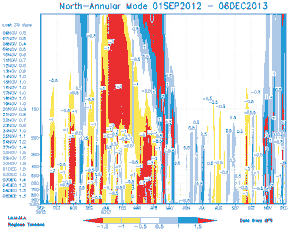 Un indice molto efficace è il NAM (North Annular Mode). Nell’ inverno scorso(soprattutto nel mese di gennaio/febbraio)sul sito abbiamo già trattato l’argomento riguardante quest’indice. Esso misura la differenza di pressione a tutte le quote, quindi dal suolo, alla troposfera e per finire alla stratosfera, fra le zone polari e il mediterraneo.