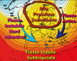 Lo scenario europeo, da qualche giorno, vede una robusta alta pressione stazionante sulla penisola Scandinava. Ai suoi bordi agiscono, dal lato Atlantico, una profonda depressione, “battezzata” dal centro elaborazioni meteorologiche di Berlino, con il nome “Paola”, e dalla parte orientale europea, una goccia fredda di natura continentale, che da qualche giorno invia spifferi freschi sulle regioni adriatiche italiane. In prospettiva (inizio della prossima settimana) la figura che condizionerà il nostro territorio, sarà la depressione atlantica. La suddetta, non potendo spostare il suo raggio di azione verso levante (posizione dell’alta pressione decisiva a questo mancato spostamento) non può che muoversi verso una zona “fertile” per il suo movimento: il Mediterraneo. A questa evoluzione, si aggiungerà, in maniera decisiva, un’altra componente, che renderà estremamente efficace tale figura barica: il richiamo di aria calda e umida, presente sulle coste dell’Africa settentrionale, che la suddetta depressione, richiamerà all’interno del suo vortice. Una miscela che aumenterà,i n maniera esponenziale, la fenomenologia collegata alla…spigliata “signorina Paola“, tale da farla diventare poco signorina e nello stesso tempo un’odiata meteorina televisiva, in viaggio verso la nostra Italia.