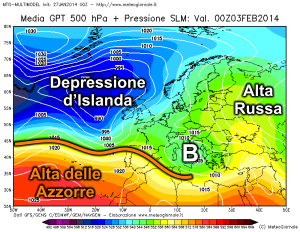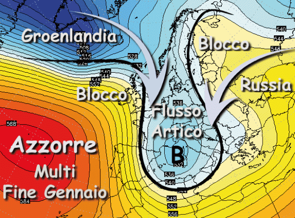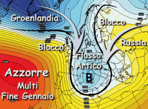 Sostanzialmente questa manovra permetterà all’alta pressione delle Azzorre di elevarsi verso le latitudini settentrionali europee. In questo modo le correnti atlantiche non possono più invadere il mediterraneo e quindi l’aria fredda artica in discesa dalle zone polari avrebbe via libera per raggiungere la nostra penisola, con un contributo di aria più fredda continentale presente sulla Russia europea.