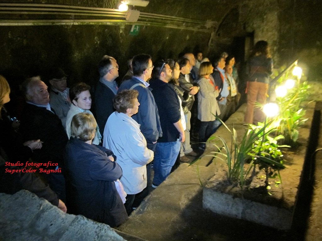Ore 09:15 – Visita alla Napoli Sotterranea”. Video introduttivo ed escursione itinerante. La visita comprende tre percorsi: 1) acquedotto greco-romano. Ad una profondità di ca. 40 m, si visitano alcune delle cavità tufacee scavate in epoca greca (IV sec. a.C.), sfruttate come cisterne per l’approvvigionamento idrico di Napoli per circa 23 secoli; 2) visita di una parte del Teatro Romano di Napoli, inglobato nel XV sec, dalle abitazioni oggi esistenti in Via Anticaglia, Vico Cinquesanti e Via S. Paolo; 3) summa cavea del Teatro romano. E’ stata allestita una mostra permanente con una trentina di scarabattoli antichi in legno, a custodire scene della natività e del presepe popolare.