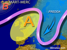 Il contrasto con aria più calda preesistente favorirà anche temporali e rovesci di grandine. Ritornerà la neve in appennino a quote comprese fra i 900 e i 1300 metri.