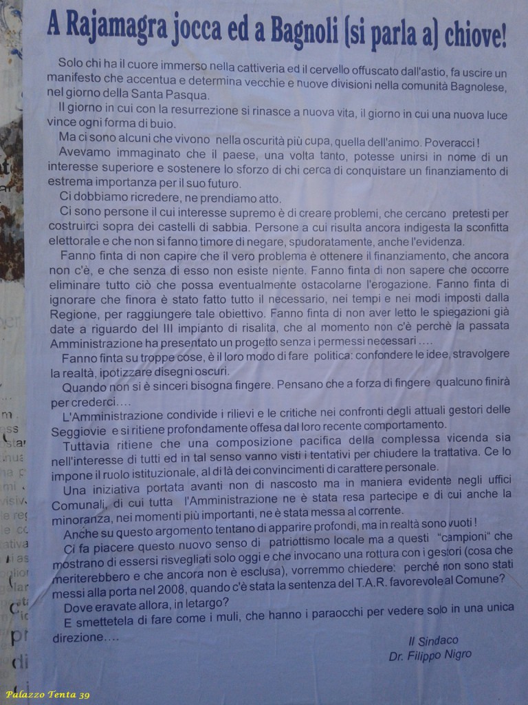 È arrivato il manifesto del signor Sindaco e con questo sono due… manifesti.