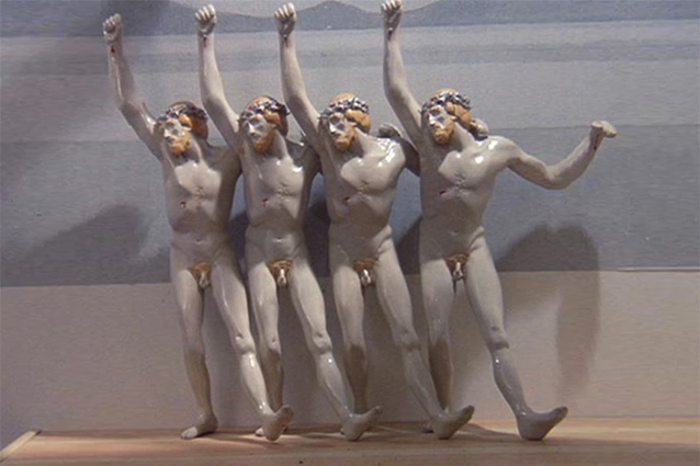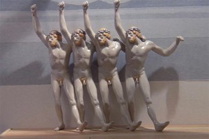 Commossi col naso all’insù / di un Cristo rappresentato nell’atto del suo ultimo anelito terreno / e mai impietositi di esseri viventi nel loro tangibile dolore / trascinati dietro tavole di legno e grovigli di spine / alla ricerca egoistica della propria espiazione / incuranti dei malesseri che ancora con affanno sospirano.