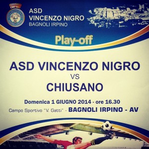Domenica 1 giugno 2014, con inizio alle ore 16:30, l’ A.S.D. Vincenzo Nigro di Bagnoli si gioca la semifinale play off contro il Chiusano San Domenico, in una gara secca. Alla compagine di mister Chieffo basterebbe anche il pareggio. Infatti se la partita dovesse finire in parità, sia alla fine dei tempi regolamentari che eventualmente dei supplementari, saranno i bagnolesi a passare il turno successivo.