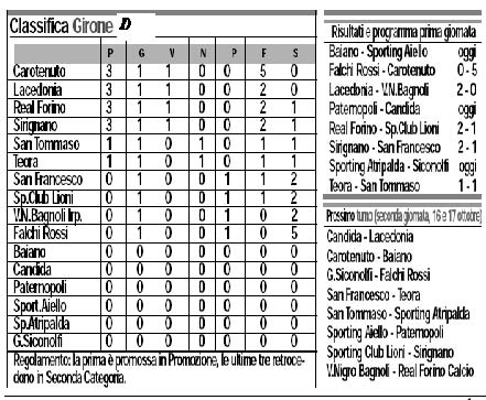 Dopo 4’ di gioco su una corta respinta della difesa D’Agnelli indovinava con un rasoterra l’angolino basso alla destra dell’incolpevole portiere bagnolese, a questo punto con una squadra giovane in campo il pericolo di un tracollo poteva essere reale , invece i ragazzi non si sono demoralizzati e hanno giocato un buon calcio semplice e con ordine, sfiorando al 35’ il pareggio dopo una bella azione di Fierro. IL Lacedonia , che lotterà senz’altro per le prime posizioni , nonostante il dominio territoriale non ha creato tante occasioni da rete, merito anche della difesa bagnolese,due le più importanti da ricordare al 20’ Fratianni con un tiro da lontano sfiorava il palo e un’altra al 41’ in mischia Iungo mandava fuori da pochi passi.