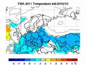 Tornando al prossimo inverno, noi ci limiteremo a proporvi una tendenza previsionale che chiameremo “sperimentale o stagionale”. Non è certo di nostra emissione, bensì l’ipotesi probabilistica ci viene proposta da un grosso centro di analisi che sistematicamente ogni anno emette tali previsioni. Il centro che prendiamo in considerazione è quello della NASA. Nell’ultimo run del mese di ottobre, ancor più rispetto a quello di settembre, sono chiaramente evidenti le ipotesi che ci portano verso un inverno particolarmente rigido per l’Europa.