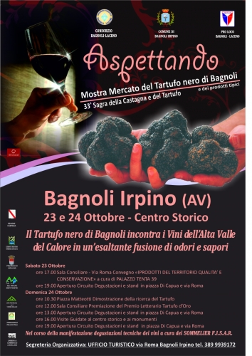 Sabato 23 e domenica 24 ottobre nel centro storico di Bagnoli il TARTUFO NERO incontra i VINI DELL’ALTA VALLE DEL CALORE in una esaltante fusione di odori e sapori …