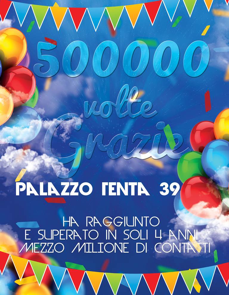 Il sito web del Circolo “Palazzo Tenta 39” ha raggiunto e superato in soli 4 anni(*) MEZZO MILIONE di contatti e UN MILIONE E MEZZO di pagine viste.