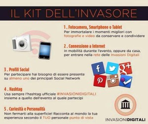 Una manifestazione nata per caso, che in due edizioni ha riscosso un grande successo in tutt’Italia. Un evento nato con l’obiettivo di diffondere la cultura e il patrimonio culturale italiano usando internet e i social media. E in tanti, in diverse città italiane, pieni di curiosità e di voglia di conoscere, hanno partecipato armati di macchine fotografiche digitali, iPhone, tablet, smartphone e videocamere. Sono le #InvasioniDigitali, nate da un’idea del blogger Fabrizio Todisco. Grazie agli hashtag creati per l’occasione in tanti, nei giorni stabiliti per l’evento, hanno postato immagini di opere e percorsi culturali che in men che non si dica hanno fatto il giro della rete.