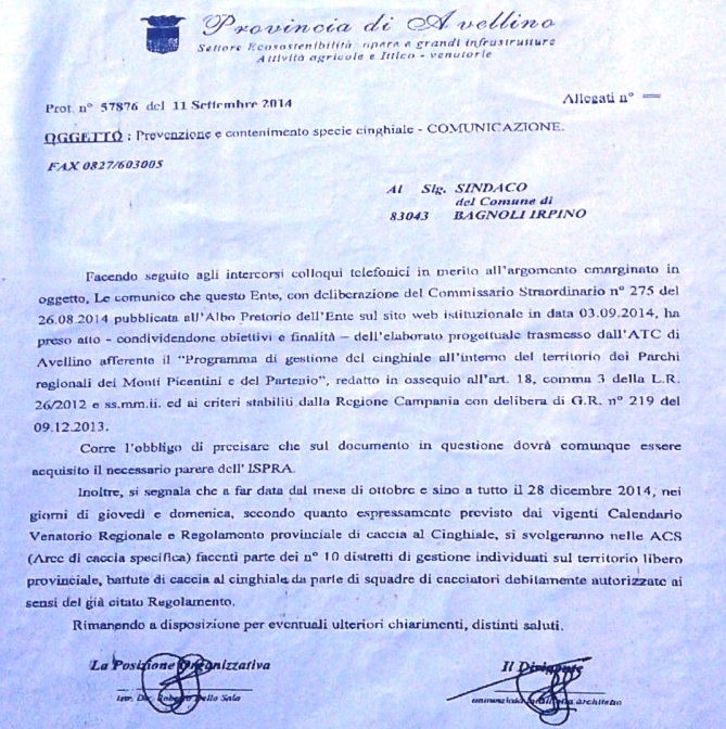 L’amministrazione ha pubblicato la lettera della provincia che non aggiunge niente di nuovo, visto che parla dell’articolo 18,comma 219 del 26/2012,dove tuttavia manca il parere dell’ISPRA,e continua con il normale calendario venatorio, insomma purtroppo non c’è niente di concreto.