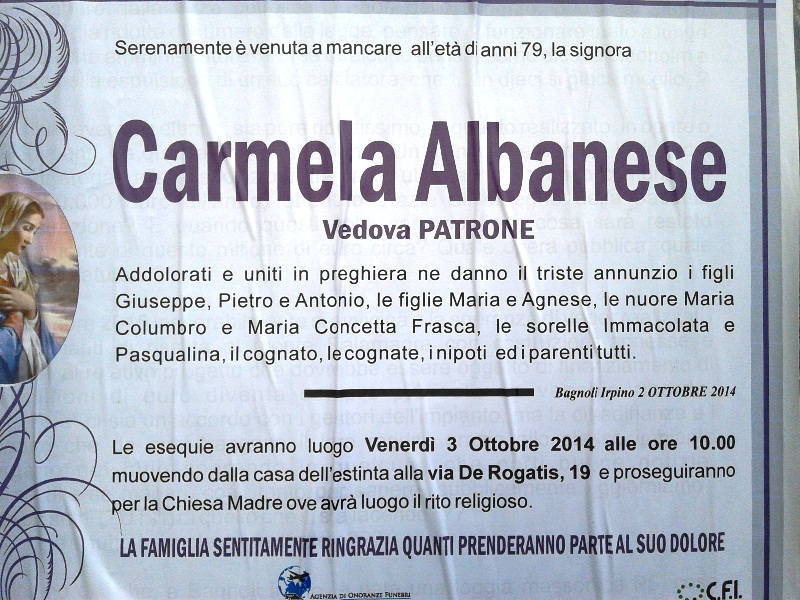 Carmela Albanese, vedova Patrone