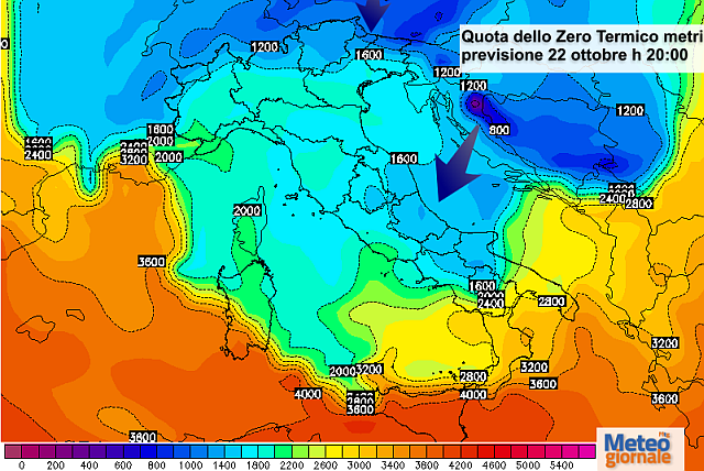 Fra l’altro, prima che ciò accada, una depressione interesserà nella giornata di mercoledì 22 ottobre soprattutto le zone adriatiche spostandosi nel pomeriggio verso le regioni meridionali. Fino alla giornata di venerdì 24 ottobre dobbiamo aspettarci tempo freddo ed instabile proprio sulle regione suddette. Sul nord-Italia e sulle regioni centrali tirreniche il tempo sarà migliore. Le temperature scese di molti gradi si attesteranno anche sotto le medie del periodo. Si assisterà ad una loro ripresa solo nel fine settimana e soprattutto nelle zone del nord e quelle tirreniche.