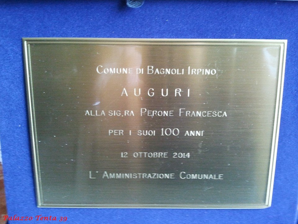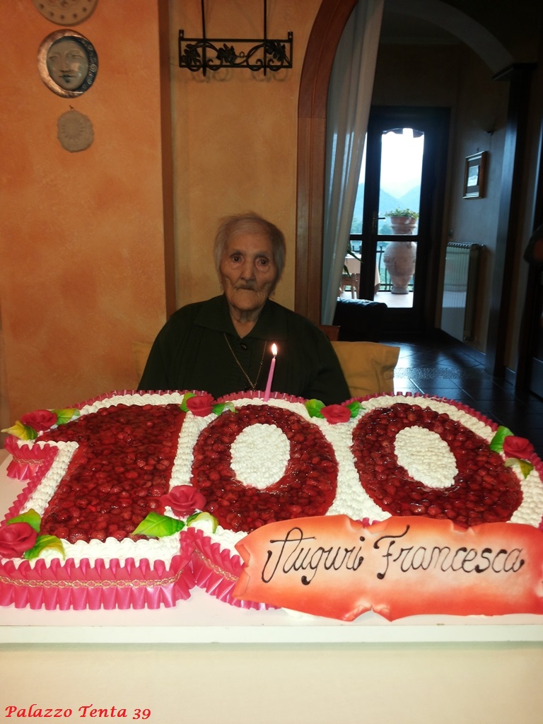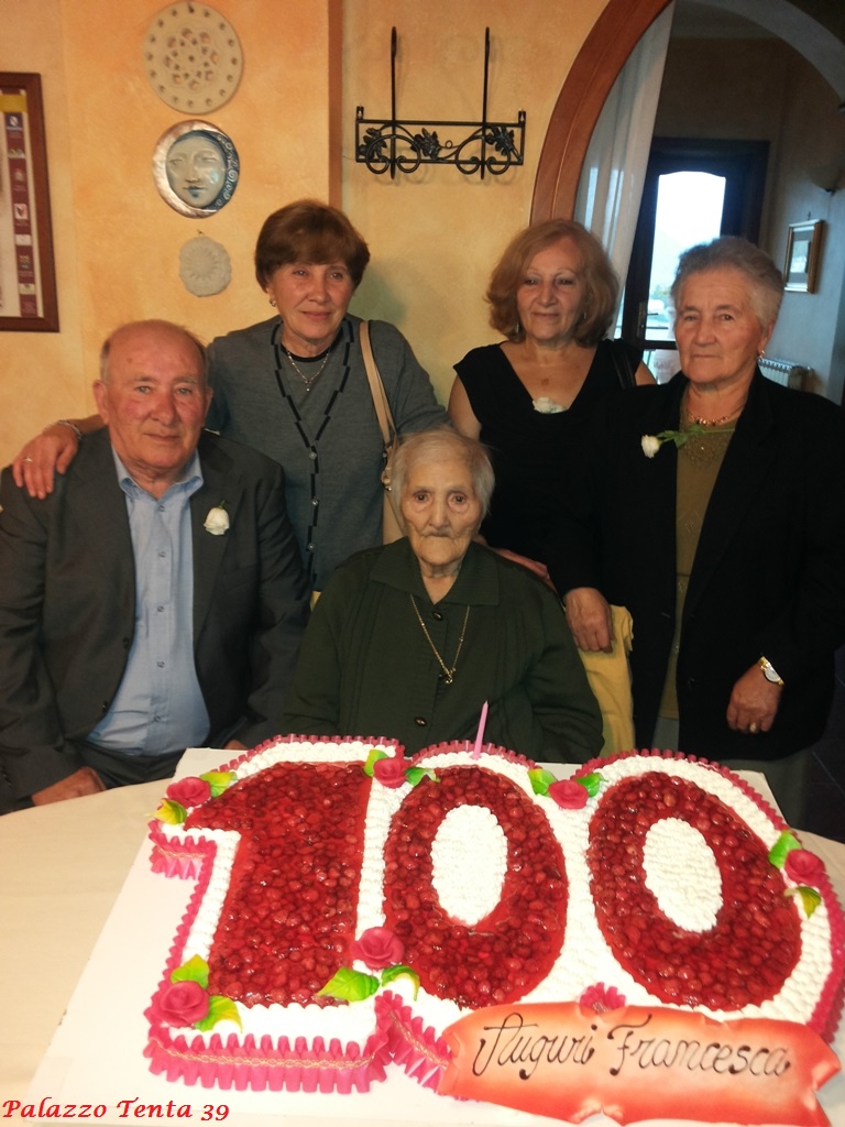 La sua tenacia caratteriale le ha consentito di condurre una vita sempre meritevole di rispetto da parte dei suoi familiari.I familiari tutti al fine di festeggiare l’evento del centesimo compleanno, si sono riuniti in banchetto per formulare i migliori auguri e un cordiale abbraccio alla amata centenaria nonna FRANCESCA.