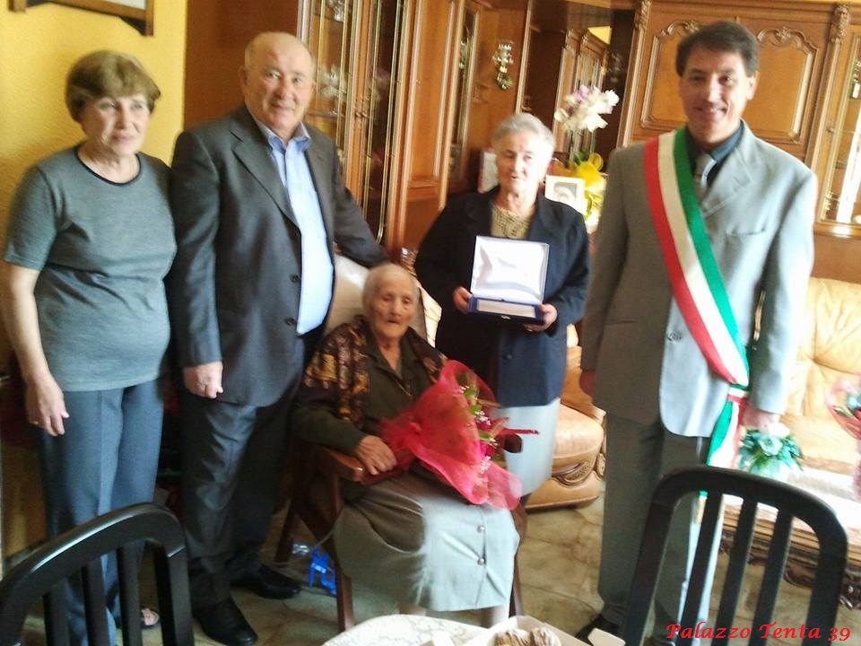 Il sindaco, dott. Filippo Nigro, si è recato a casa della festeggiata per farle gli auguri e per consegnarle un omaggio floreale e una targa ricordo a nome dell’Amministrazione comunale.