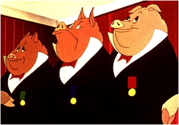 Più che per indole e naturale predisposizione umana, ho capito che si è comunisti per rabbia e comodità poiché dopo un invito al buffè dei bianchi o dei blu, i rossi scoloriscono fino ad ottenere una gamma variegata da arcobaleno. Un rosso diventerebbe bianco se solo potesse, rimane tale solo perché nessuno è ancora passato ad offrirgli un cambio di tono candido atto a sopprimere la sua esclusione economica e sociale. La natura umana prescinde dai colori, essa ha per congenita predisposizione la spinta all’interesse personale e privato, all’egoismo: tingersi di colori politici nella società equivale ad un mero compiacimento illusorio di sapersi e sentirsi diversi dalla totalità, così i gruppi d’appartenenza si caricano di valori fittizi che corroborano il nostro autoconvincimento ad immaginarci nel giusto e nella ragione più di quanto non lo siano gli altri. Dinanzi ad un banchetto un rosso, un bianco o un nero agiscono nelle medesima maniera, indossano solo pettorine diverse di squadre diverse che per natura perseguono il primario obiettivo di prevalere l’uno sull’altro per raggiungere il proprio personale appagamento. La società non è altro che una giungla ordinata per colori, il nome che diamo alla nostra stupida convinzione di saperci più evoluti degli animali. Ma qualcuno era comunista davvero, si è slegato dal vincolo parentale delle scimmie e dei porci, era disposto a sedere al banchetto solo con tutti gli aventi diritto, avrebbe sputato in faccia ai bianchi e ai neri se l’offerta avesse incluso solo sé e lasciato in piedi i suoi simili. Eravamo così brutti, sporchi e cattivi, indossavamo maglioni demodé e giacche vintage, avevamo l’aria trasandata della noncuranza del corpo, l’aspetto bruto e sferzante sotto la chioma ribelle e l’incolta barba; dismessa la provocante presenza, con camice bianche e impeccabile parvenza d’aspetto rassicurante, schiariamo il colore che fu per farci spazio tra la gente perbene, i colletti bianchi ci ritraggono oramai con attendibile garanzia. Accoglieteci allora borghesi, la sinistra è ora borghese, ci siamo rifatti col vestito nuovo e l’aria da bravi figli dell’epoca nuova, noi siamo diversi ma uguali. Non ci arrabbiamo più, non urliamo più, non sogniamo più. Bianchi, blu, neri, dovrei amarvi più dei rossi scoloriti che assumono striature d’occasione nei periodi dei saldi, avete avuto il coraggio di mostrarvi sempre così per quel che siete: eravate bestie incuranti e ingorde, non vi siete mai illusi di poter diventare altro, di essere migliori. Siamo tutti compagni e compari, oramai mangiamo allo stesso tavolo e lanciamo gli avanzi lontano e con forza affinché gli ultimi e i diversi non si avvicinino troppo a noi a minar l’armoniosa e doviziosa nostra istintività del sopravvivere nell’opulenza. Come i porci de “La fattoria degli animali” di George Orwell che sovvertono l’ordine costituito, raggiunto il potere ci comporteremo proprio come i tanto odiati e crudeli padroni umani spodestati. C’eravamo tanto illusi, compagni rossi, bianchi e blu.