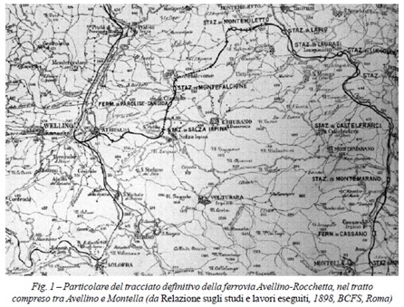 Frutto di decenni di proposte e di dibatti, avviati fin dal 1868, la ferrovia Avellino-Ponte Santa Venere (dal nome della località posta ad ovest della stazione di Rocchetta Sant’Antonio) riceve un primo avallo in sede di Consiglio Provinciale di Principato Ultra nel 1872, per iniziativa del suo presidente Michele Capozzi. Segue un lungo e tormentato iter politico e burocratico, segnato anche dall’autorevole sostegno di Francesco De Sanctis, che condurrà dopo sette anni all’inclusione della linea, come tracciato di terza categoria, nella legge del 29 luglio 1879, relativa al completamento delle ferrovie italiane . Trascorrerà tuttavia oltre un decennio prima che i lavori abbiano inizio (…) Finalmente, a seguito di apposita convenzione sottoscritta il 21 giugno 1888, la costruzione della linea Avellino-Ponte Santa Venere è avviata nei primi mesi dell’anno successivo, su progetto esecutivo della Società per le Strade Ferrate del Mediterraneo, subentrata intanto alle Ferrovie Meridionali. Proprio nello stesso periodo, l’organico delle Ferrovie del Mediterraneo si arricchisce di grandi figure di ingegneri ferroviari, tra cui Cesare Bermani e Mattia Massa, entrambi provenienti da esperienze nelle ferrovie dell’Italia settentrionale, giunti alle Mediterranee nel 1885 e posti rispettivamente a capo della sezione lavori e della direzione generale della rete.