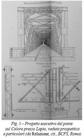 La costruzione della ferrovia mette in moto un timido sviluppo industriale nella provincia di Avellino, legato alla produzione di laterizi, che tuttavia non riesce a sopravvivere a lungo dopo l’inaugurazione della linea. Già nel primo periodo dei lavori, peraltro, il progetto subisce diverse varianti finalizzate al contenimento dei costi, tra cui emerge la sostituzione di molti viadotti in muratura con più economiche travate in acciaio, suscitando le critiche del grande meridionalista Giustino Fortunato, impegnato in quegli anni a sostegno delle ferrovie Ofantine, che scongiura l’esecuzione di “lavori menati innanzi con la lesina dell’avaro e, quel che è più, senza una grande preoccupazione dell’avvenire”. A parziale smentita di queste preoccupazioni, tuttavia, il tracciato compiuto presenta, su 58 ponti e viadotti di maggiore rilievo, oltre quindici strutture superiori ai 50 metri di lunghezza interamente realizzate in muratura. Tra queste, spicca il grande viadotto curvilineo sul fiume Sabato, di particolare valenza paesistica, posto immediatamente al di fuori della stazione di Avellino e caratterizzato da 16 campate di 11 metri di luce ciascuna, per una lunghezza complessiva di 225 metri. Di notevole interesse è anche il ponte obliquo sul fiume Calore presso San Mango (km 24+376) costituito da cinque arcate di 12 metri di luce, per una lunghezza complessiva di 104 metri. Caratterizzato per il suo andamento obliquo da un articolato apparecchio elicoidale delle volte, il ponte presenta fondazioni realizzate con cassoni ad aria compressa e pile particolarmente curate nei rostri, coronamenti e cappucci. Entrambe le strutture, infine, mostrano il ricorso ad una tipologia molto diffusa in ambito ferroviario, dove la scelta di adottare archi a tutto sesto con luci inferiori ai 15 metri trae origine dal problema della sollecitazione orizzontale generata alla sommità della pila, sia per effetto della frenatura del treno, sia quando il treno stesso carica solo una delle due volte impostate su ciascuna pila.