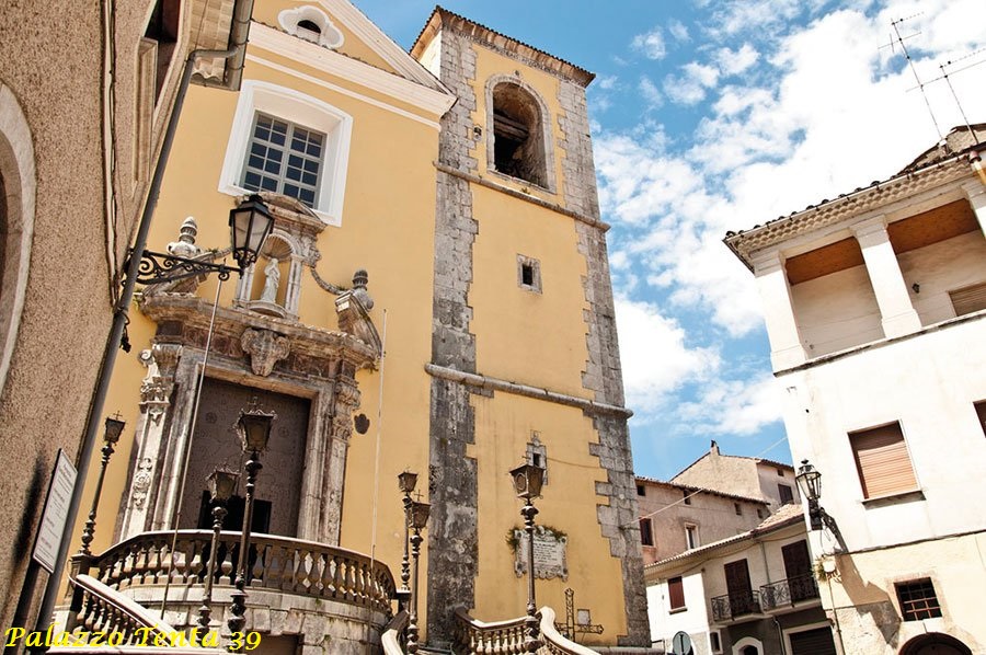 La chiesa Collegiata di S. M.Assunta ha un bel prospetto settecentesco con portale in pietra scura da taglio (tufo vulcanico) ; l’interno è a cinque navate, una centrale grandiosa, due laterali fiancheggiate alla lor volta di altre due più piccole che possono dirsi più propriamente ambulatorii tra una cappella e l’altra. La parte absidale ed il transetto terminante coi soliti cappelloni laterali è sormontato da cupola, corrispondono all’insieme di belle e solenni proporzioni. La decorazioni in stucchi barocchi di buon disegno è attintata a tinte volgari.