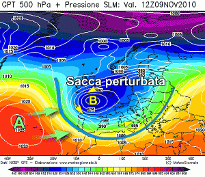 Una grossa e profonda depressione, centrata sulle isole Britanniche, governa il tempo in parecchie nazioni europee. Fra queste, anche l’Italia, dalla giornata di lunedì, risentirà gli effetti di una perturbazione molto insidiosa. Solo le regioni del settore adriatico, vivranno parzialmente gli effetti di questo nuovo affondo perturbato. Pertanto le giornate di martedì e mercoledì daranno ancora intense precipitazioni soprattutto sulla Toscana, Lazio, e Campania. Le piogge più sparse si attarderanno sulle restanti regioni, con quelle adriatiche più “fortunate” e quindi solo sfiorate da questi episodi.