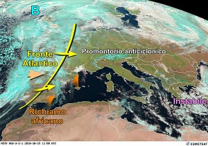 La giornata di sabato porterà verso sera le prime piogge sul nord-ovest. Sulle restanti regioni settentrionali il peggioramento si consoliderà soprattutto nella giornata di domenica. Le regioni centrali tirreniche vedranno i cieli dapprima sereni per una successiva crescita della nuvolosità che solo dalla nottata-prime ore della giornata di domenica creerà occasionali rovesci. Il resto del territorio italiano trascorrerà una giornata stabile e tutto sommato gradevole sotto l’aspetto termico. Intanto i primi soffi sciroccali si faranno sentire un pò su tutta la penisola. La giornata grigia domenicale si affermerà su tutto il nord-Italia e sulle regioni centrali più esposte ai venti caldi sciroccali. Le precipitazioni possono presentarsi intense e persistenti in quanto l’alta pressione presente a est della penisola offrirà uno scudo alquanto resistente e pertanto la perturbazione non potendo traslare verso est, continuerà a scaricare i propri “bollori” proprio sulle zone sopra indicate. Le regioni centrali adriatiche e soprattutto il meridione si gioveranno di questo blocco anticiclonico e in ritardo vedranno peggiorare il tempo.
