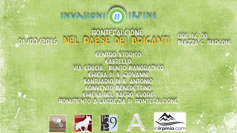Ritornano le “Invasioni Irpine” questa volta” PalazzoTenta39 “con “Terre Del Lupo”,” Anthemis”,” Paesaggi Irpini “e “InIrpinia.com” vi porta alla scoperta del paese dei briganti… Montefalcione. Ovviamente non vi anticipiamo niente, ma vi aspettiamo domenica prossima 1 marzo 2015 per scoprire questo meraviglioso angolo d’Irpinia. Di seguito il programma.