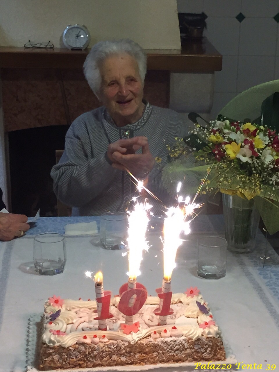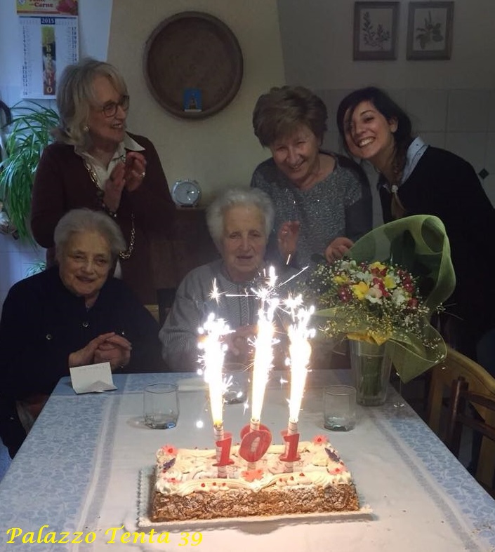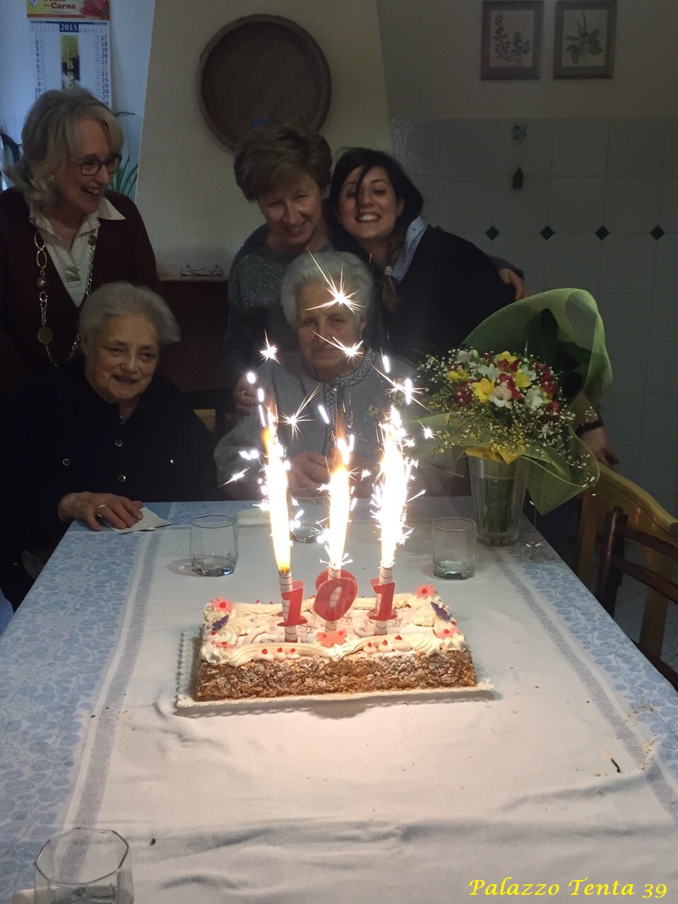 La famiglia si è nuovamente e felicemente riunita per festeggiare questo anniversario. Abbracci, coccole, omaggi floreali ed una bellissima torta a ricordare il lungo vissuto della loro amata.