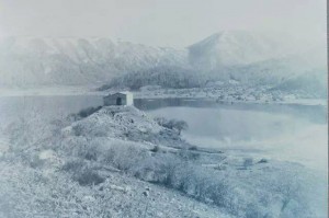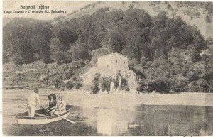 Un quadro di Michele Lenzi, che fa bella mostra di se a Palazzo Caracciolo, rappresenta la scena ottocentesca della costruzione di un piccolo edificio sulla sommità di una collina, sullo sfondo del lago e delle verdi alture che circondano il pianoro, con l’inconfondibile Monte Cervialto avvolto dalle nuvole all’orizzonte.