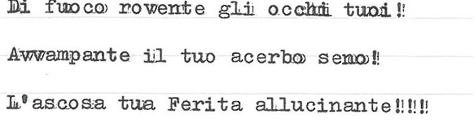 L’amore per Sturchio parla chiaro con la voce limpida e primordiale della natura d’uno schiocco di polla sorgiva, d’uno sprillo di sangue da un arteria ferita d’un braccio sdrucito da un coccio di vetro…Scevra da ogni affabulazione poetica ed artificio intellettualistico di cui amano ammantarsi tanti “ermetici post litteram” afflitti dalla smania frustrante dell’enfant prodige genietto incompreso…, entra viceversa anzi cala piomba in picchiata di girifalco “in medias res” subito! Non muovendosi…fermandosi ad osservare contemplare sentire in sè!