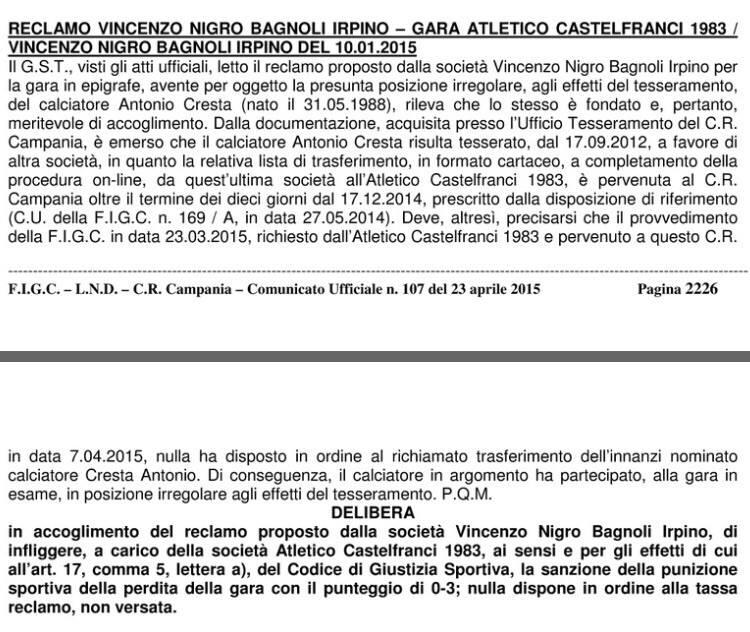 Importanti novità, ieri, dal comunicato ufficiale del Comitato Regionale Campania della F.I.G.C. che ha fornito le decisioni prese dal Giudice Sportivo non solo riguardanti i campionati regionali di Eccellenza e Promozione, ma anche quelli di Pima e Seconda Categoria.