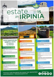 Queste 10 tappe, composte fra valorizzazione turistica, eno-gastronomica, storica, paesaggistica ed ambientale, mirano non solo a riscoprire noi stessi, ma anche a raccontarci agli altri. Per questo saranno invitati pure giornalisti, fotografi ed associazioni esterne all’Irpinia, così da promuovere questa terra ad ampio raggio, generando anche un positivo indotto economico per il territorio.Le visite saranno gratuite, con da guide in gamba, e sarà anche istituito un car sharing, ove possibile, proprio per chi volendo partecipare alla tappa si dovesse trovare nell’impossibilità di farlo non avendo il mezzo di trasporto. E questo sarà proprio uno dei temi trattati nella terza tappa (28 giugno), quando si prenderà “Il treno che non c’è”: la mobilità. Sull’abbandonata Avellino-Rocchetta si viaggerà di nuovo, camminando quei binari silenti, dalla stazione di Occhino a quella di Cairano, in un contesto spettacolare fra il verde, l’oasi wwf di Conza ed il lago. Un evento inserito per intero nel cartellone di “Cairano 7X“. La prima tappa invece (14 giugno) sarà dedicata agli scavi di Aeclanum, importante sito sannitico-romano, e poi al borgo di Gesualdo, fino ad arrivare al luogo indicato per il pozzo di esplorazione petrolifero, poco distante dal centro: visiteremo la cava dismessa insieme ai NoTriv. Nella seconda tappa (20 giugno) si andrà all’Expo di Milano per portare la nostra bellezza d’Irpinia, in 250 meravigliose fotografie, proiettate al pubblico mondiale durante un concerto del premio oscar Luis Bacalov. Le altre tappe sono tutte suggestive, emozionanti e divertenti: si va dall’Abbazia del Goleto a Rocca, fino alla Mefite ed al Carmasciano; dallo Specus Martyrum di Atripalda fino al castello di San Barbato a Manocalzati, fino ad “Assettati addo vuo'”; da Avellino, Mercogliano, fino a Monteverde, 2° borgo più bello di Italia ed al “Grande Spettacolo dell’Acqua” che riparte proprio quest’anno; da Montemarano, paese di vino e tarantella, fino al Convento di San Francesco a Folloni di Montella ed Altavilla ed Ariano; per concludere a Conza, nella meravigliosa Oasi, alla visita del parco archeologico di Compsa ed a chiudere al Calitri Sponzfest. #estateinirpinia si parte!