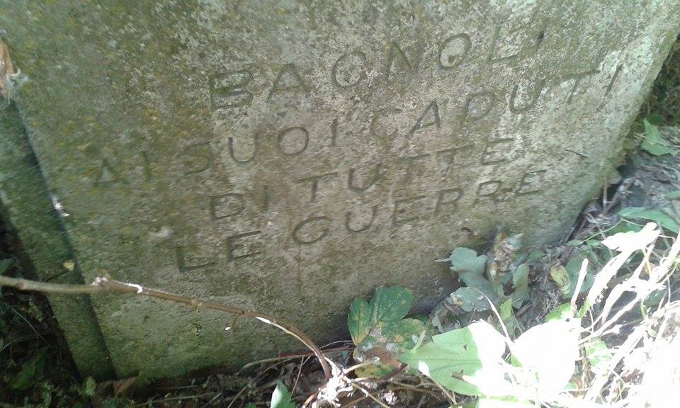 Nel corso della mattinata di martedì 7 luglio l’”Associazione socio-Culturale Palazzo Tenta 39” in collaborazione con l’assessorato alla cultura del comune di Bagnoli Irpino si è recata presso l’acquedotto in località “Difesa” alla ricerca dell’obelisco perduto in memoria ai caduti della prima guerra mondiale. Il vasto spiazzo dinanzi all’acquedotto che da via Circumvallazione si spinge fin sotto la provinciale del Laceno funge da decenni da deposito comunale per gli arredi pubblici dismessi (pezzi di marciapiedi, panchine, tubature, ringhiere, ecc..) e per il legname sequestrato. Essendo ubicato in una zona ricca d’acqua l’intero deposito è stato inghiottito da una folta vegetazione.