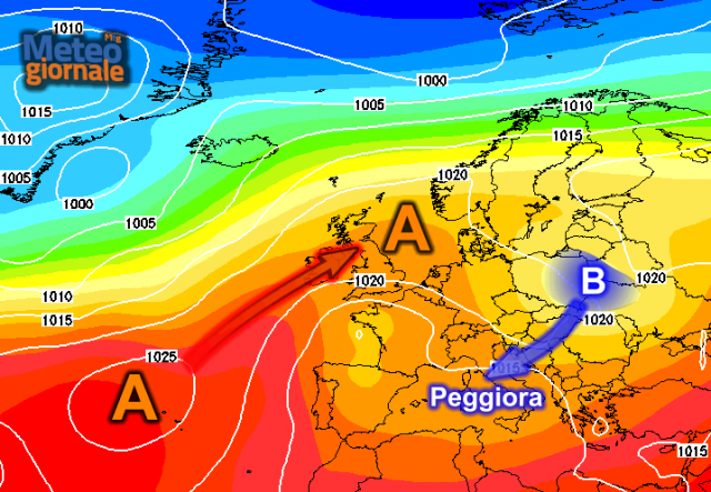 Intanto sull’Europa centrale andrà affermandosi una cellula di alta pressione che taglierà l’afflusso perturbato atlantico in direzione del mediterraneo. Nello stesso tempo, la disposizione leggermente settentrionale della suddetta alta pressione, favorirà un deciso rinforzo di correnti orientali che si affermeranno sulla nostra penisola. Il tutto a partire dagli inizi della prossima settimana.