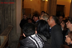 Successivamente ci si è diretti presso la collegiata insigne di Santa Maria Assunta dove è stato illustrato un bellissimo vestito in fili d’oro cinquecentesco appartenente a una Madonna del Rosario, un dipinto del D’Asti che riprende fedelmente la “Pietà” del Carracci, il “Cristo Morto” del Domenico De Venuta della scuola di Giovanni Colombo, i vari dipinti del D’Asti e del Cestaro allievi dei Solimena che adornano la volta, il coro ligneo seicentesco monumento nazionale, i resti del coro quattrocentesco e le spoglie di S. Onorio martire arrivate nel 1688 dalle catacombe di San Callisto.