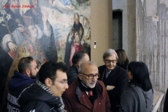 La visita è poi continuata alla volta del monastero domenicano dove ad attenderlo c’era una vecchia conoscenza di Sgarbi: la “Madonna del Rosario” di Marco Pino da Siena, un’opera monumentale del 1576 per commemorare la potenza di Ambrogio Salvio, confessore dell’imperatore Carlo V, e delle famiglie bagnolesi che combatterono la battaglia di Lepanto. Un’opera vittima di pessimi restauri, come spiegato da una delle restauratrici che ha lavorato ai primi interventi conservativi sull’opera, e conservata a pezzi sul pavimento di un monastero: senza deumidificazione e messa in pericolo da frequenti infiltrazioni d’acqua. “Servirebbe un altro terremoto per rimediare ai danni di