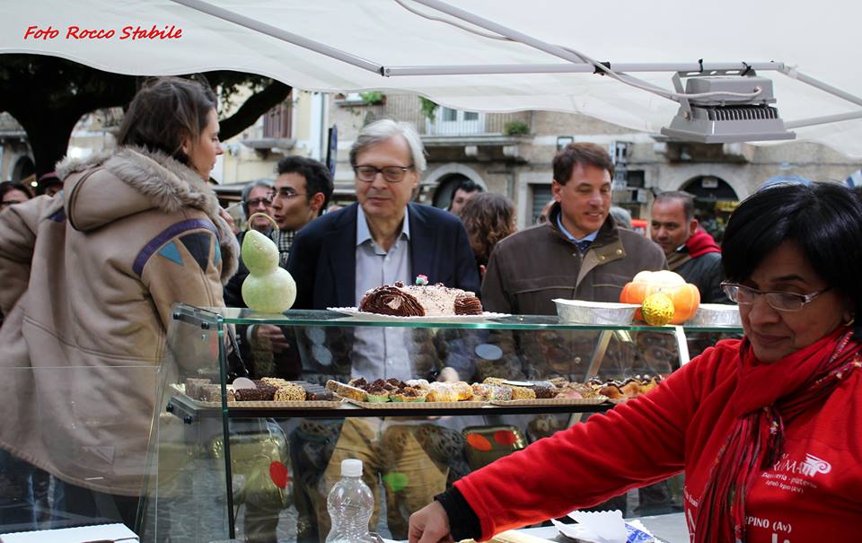 Per ultimo ha preso la parola un Vittorio Sgarbi raggiante per la splendida giornata passata a Bagnoli, collegando la sua presenza alla chiusura dell’Expo poche ore prime alla sagra bagnolese, per dichiarare che “l’Expo ha chiuso a Milano, ma è continuata a Bagnoli irpino (con le sue eccellenze agro-alimentari)”. Il fattore culturale che è mancato all’Expo è stato, invece, presente nella kermesse bagnolese. Nell’enunciazione di quanto visto nel pomeriggio un’uscita sull’amico di Nusco e della sua banda di deficienti che hanno tappezzato l’Italia di villini in cemento armato ha scatenato il panico in sala. Subito dopo Sgarbi ha precisato che a suo parere il vero esempio di democrazia cristiana è quello che ha trovato in questo paese, che non rinnega le sue origini e che s’impegna nella salvaguardia dell’identità della comunità attraverso l’arte. A colpire il professore è stata anche l’opera dello storico locale Gildo Parenti, sulle radici cristiane di Bagnoli attraverso una trentina di chiese esistenti o scomparse presenti nel paese.