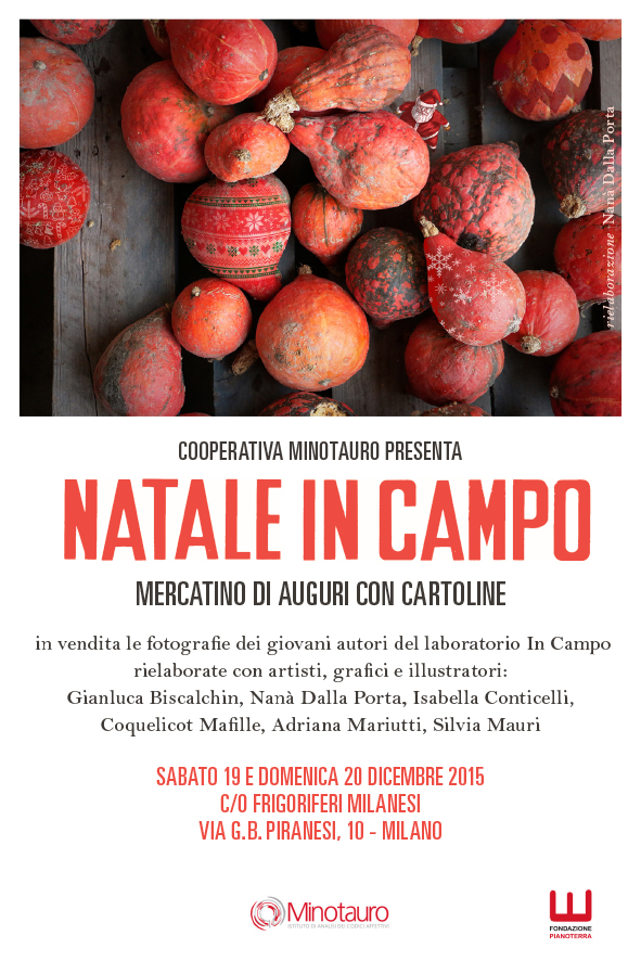Durante il mercatino natalizio dei Frigoriferi Milanesi si svolgerà la terza edizione della mostra fotografica del progetto IN CAMPO della Cooperativa Minotauro. IN CAMPO è un laboratorio fotografico a cui partecipano adolescenti dell’età compresa tra i 14 e i 20 anni. Sono ragazzi che attraversano un momento di difficoltà nel loro percorso di crescita, disinvestono nelle relazioni con il mondo esterno, scolastico e sociale e che hanno un profondo senso di sfiducia rispetto al proprio futuro.
