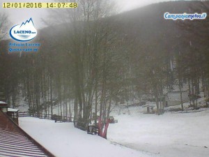Nel primo pomeriggio, un rapido fronte perturbato ha portato la prima neve del 2016 sull’altopiano del Laceno, in provincia di Avellino, a quota 1400 metri (foto tratte da Laceno.net).