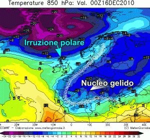 Il contesto freddo dovrebbe accompagnarci fino alla giornata di venerdì, quando avrà inizio una fase meno rigida, comunque fresca, e dove la neve potrebbe comparire anche a quote basse sulle regioni tirreniche in particolare sull’alto e medio tirreno. Pertanto domani martedì 14 dicembre, emetteremo un comunicato possibilmente più particolareggiato, confermando fin da oggi che la situazione potrebbe risultare comunque labile rispetto ad un nocciolo di aria gelida che potrebbe, una volta arrivato sul nostro paese, modificare l’impianto previsionale.