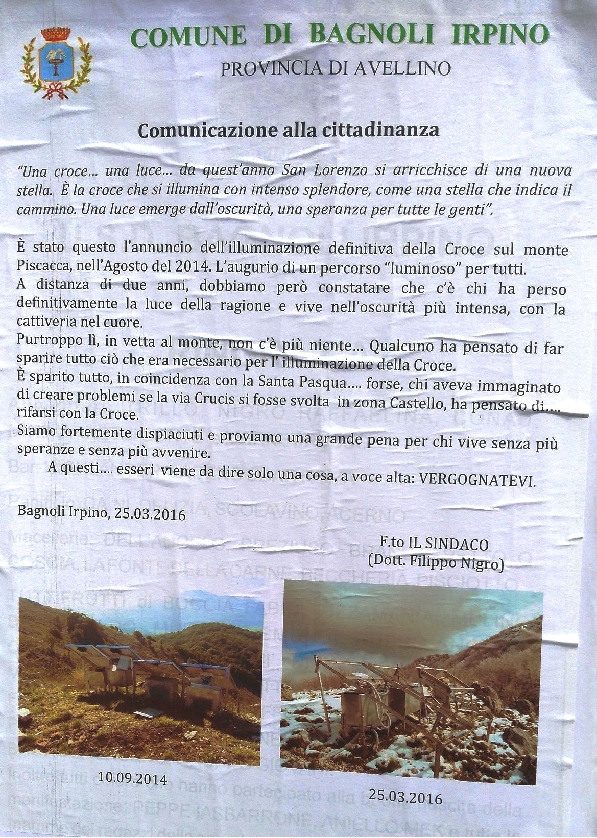 25.03.2016, Il comunicato (Amministrazione Comunale di Bagnoli Irpino)