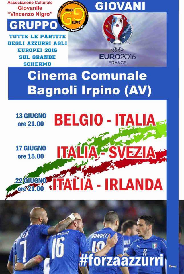 In occasione dei campionati europei di calcio in svolgimento in Francia, il Gruppo Giovani V.Nigro di Bagnoli organizza la visione sul grande schermo di tutte le partite della nazionale italiana.