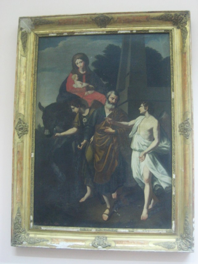 Nell’opera ”La fuga in Egitto” l’artista propone la Madonna col bambino su un asinello, guidata da un angelo, con San Giuseppe a piedi anch’egli affiancato da una figura celeste. Sullo sfondo campeggiano a destra due obelischi che indicano l’Egitto mentre a sinistra compare un villaggio lontano. Il quadro è stato realizzato come esercizio di copia e per circa 200 anni è stato di proprietà della parrocchia della Santissima Trinità di Avellino per poi passare al salone, al secondo piano, del Palazzo Vescovile. L’opera originale, attribuita ad Alessandro Turchi ( detto L’Orbetto), è collocata nel Museo di Capodimonte a Napoli. Un’altra versione è presente al Museo del Prado a Madrid.