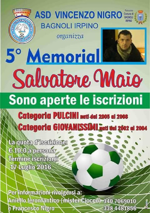 La società sportiva Asd Vincenzo Nigro organizza il 5º Memorial Salvatore Maio, il torneo di calcetto dedicato alla memoria del compianto Salvatore Maio deceduto sul campo sportivo V. Gatti il 27 febbraio 2009 a seguito di un arresto cardiaco mentre effettuava il riscaldamento della gara valevole per il campionato di Prima Categoria fra l’ Asd Bagnoli e il Francesco Guarini.