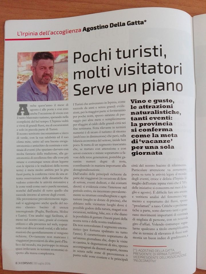 Anche quest’anno il mese di agosto è alle cporte e con esso anche l’occasione di vivere con il tanto blasonato turismo, sperando nella complicità del bel tempo; difatti l’Irpinia vedrà e vivrà di grandi flussi, ma di escursionisti e solo in piccola parte di Turisti.