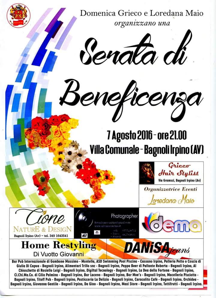Domenica Grieco: “Ancora una volta il nostro impegno va nel sociale, provando a sensibilizzare l’opinione pubblica su tematiche importanti. La finalità di questa iniziativa, che vedrà la partecipazione di tanti giovani, è la beneficenza. Sebbene siamo consapevoli di non poter mettere fine a tutti i mali che affliggono l’umanità, vorremmo nel nostro piccolo fare qualcosa per dare sostegno a chi è in difficoltà. Il ricavato della serata verrà infatti devoluto interamente al reparto pediatrico oncoligico dell’ospedale Rummo di Benevento“.