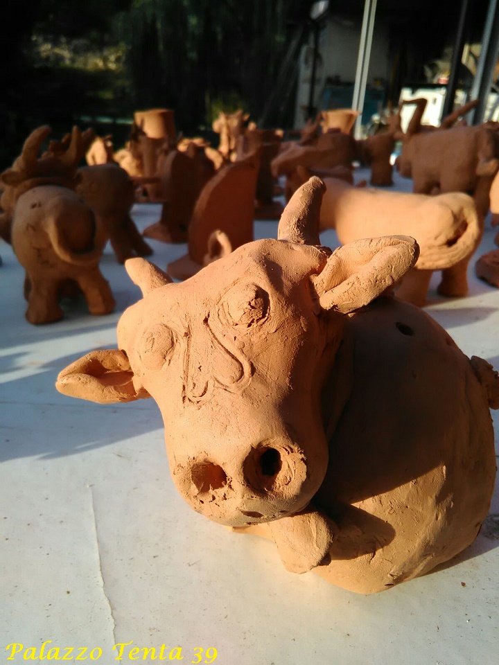 Il laboratorio ha visto la partecipazione di adulti e bambini che hanno realizzato un modellino in argilla della Vacca di Fuoco. Oltre alla realizzazione del laboratorio di modellatura, nello stesso giorno si sono svolti il Laboratorio Raku a cura di Simona Schiavone e il laboratorio di cartapesta a cura di Nadia Marano, la quale ha realizzato con l’aiuto dei partecipanti una Vacca in cartapesta.