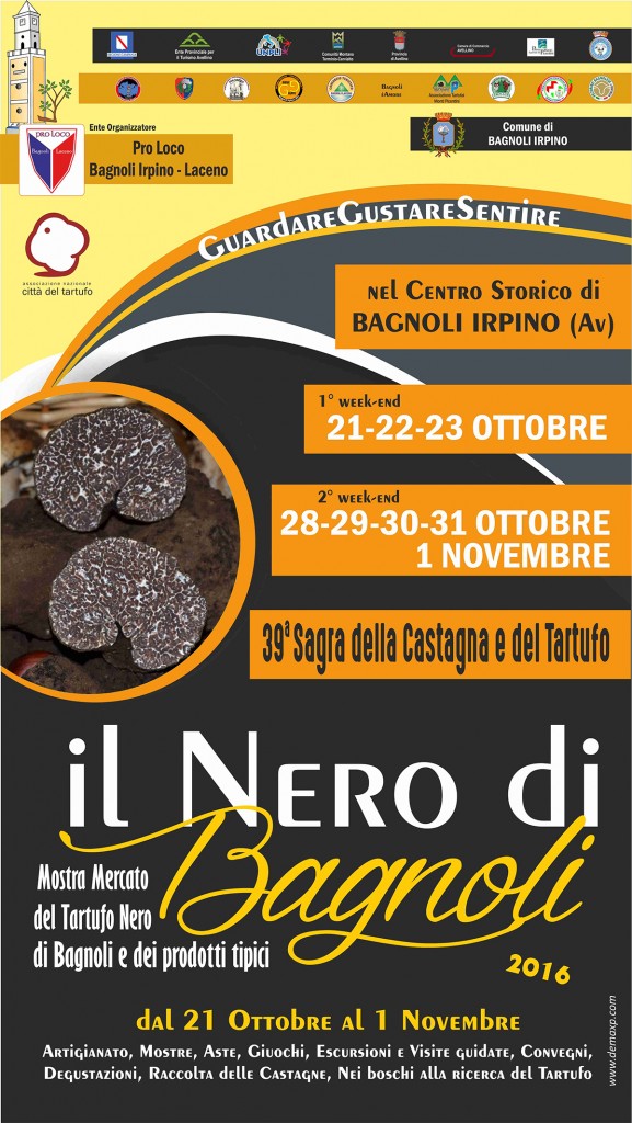 Il tuber mesentericum vittad è un tartufo grande e dall’aroma intenso. In provincia di Avellino è il re indiscusso e viene detto il Nero di Bagnoli: dal 21 ottobre al 1 novembre a questo tubero è dedicata la festa d’autunno. Da non perdere la mostra micologica, l’asta e le escursioni guidate sui monti di Laceno. E per i più ghiotti appuntamento il 29 ottobre per la scorpacciata con il tronco di castagne, enorme dolce simbolo della manifestazione preparato con oltre 600 chili di castagne. Il programma su: prolocobagnoli-laceno.org