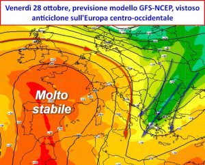 Il fine settimana, salvo eventuali variazioni atmosferiche, che al momento non sembrano scorgersi, il tempo continuerà ad essere stabile con una leggera ripresa delle temperature, soprattutto nelle ore diurne.Praticamente fino a domenica 30 ottobre il quadro previsionale sopra esposto ha una buona dose di affidabilità.